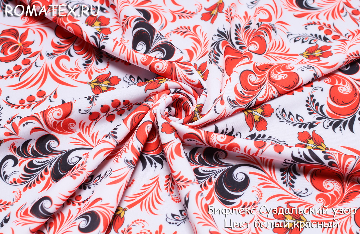 Ткань бифлекс матовый суздальский узор цвет белый, красный